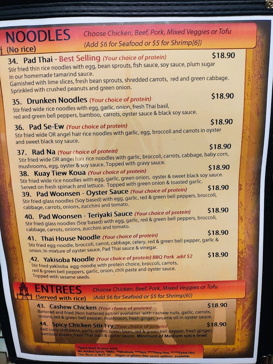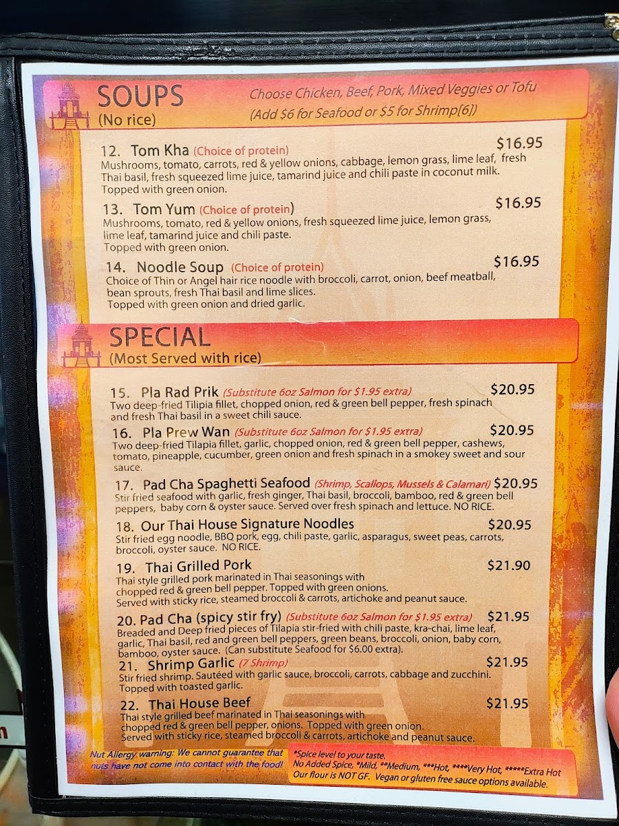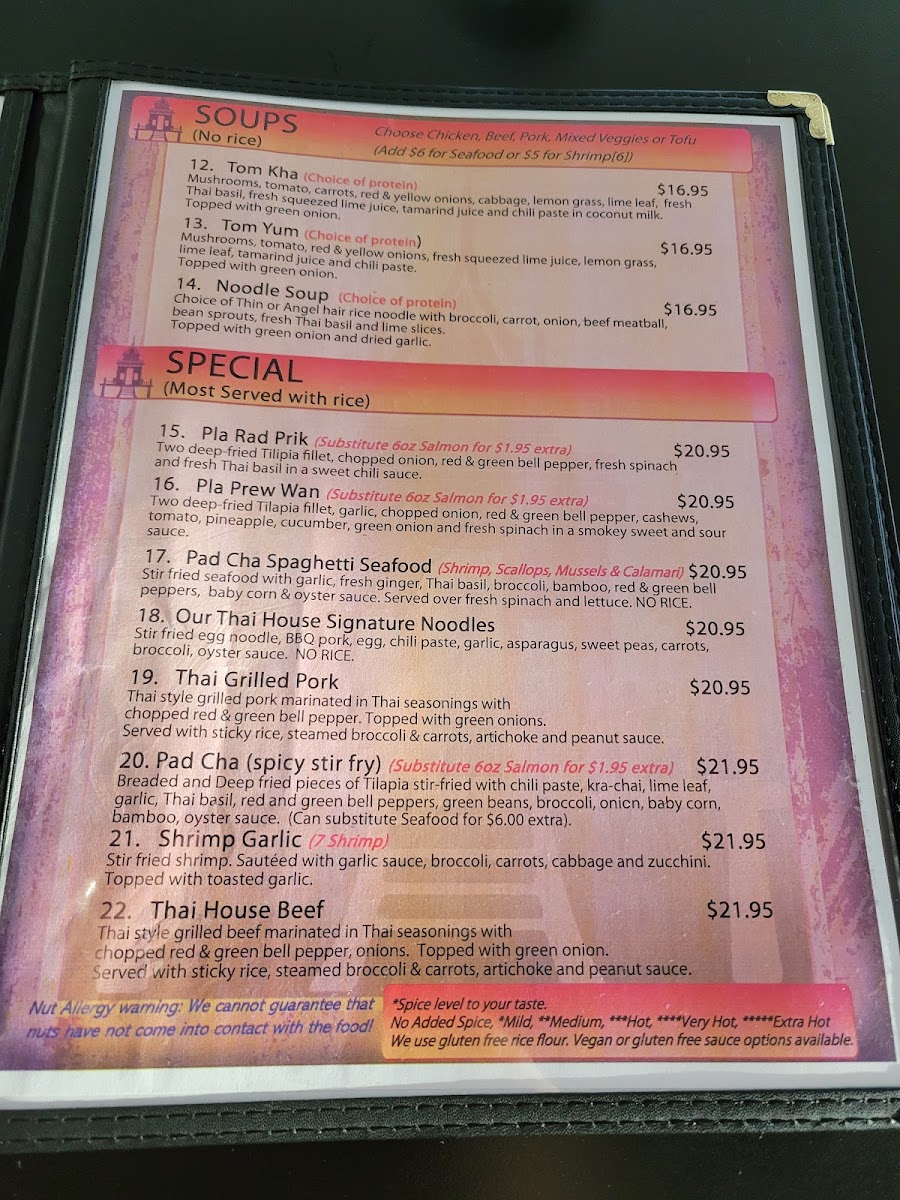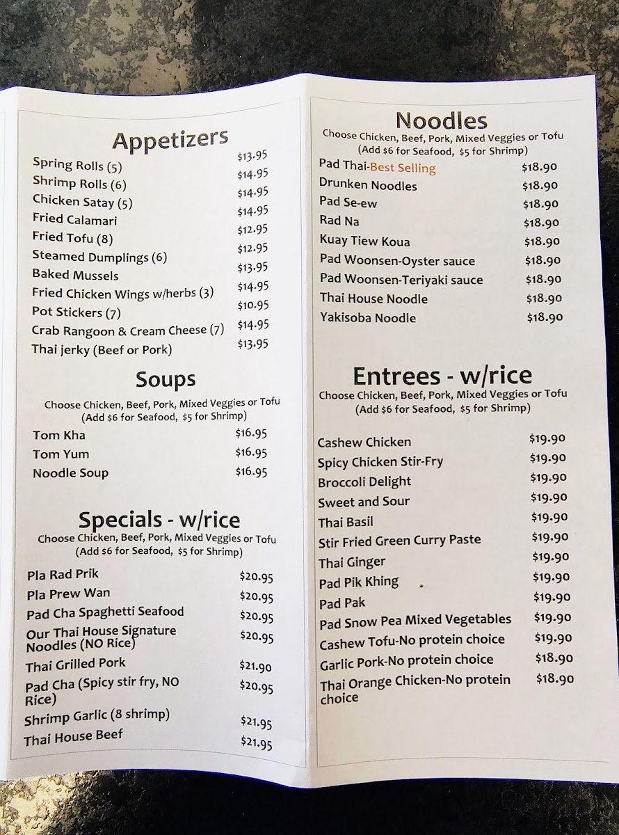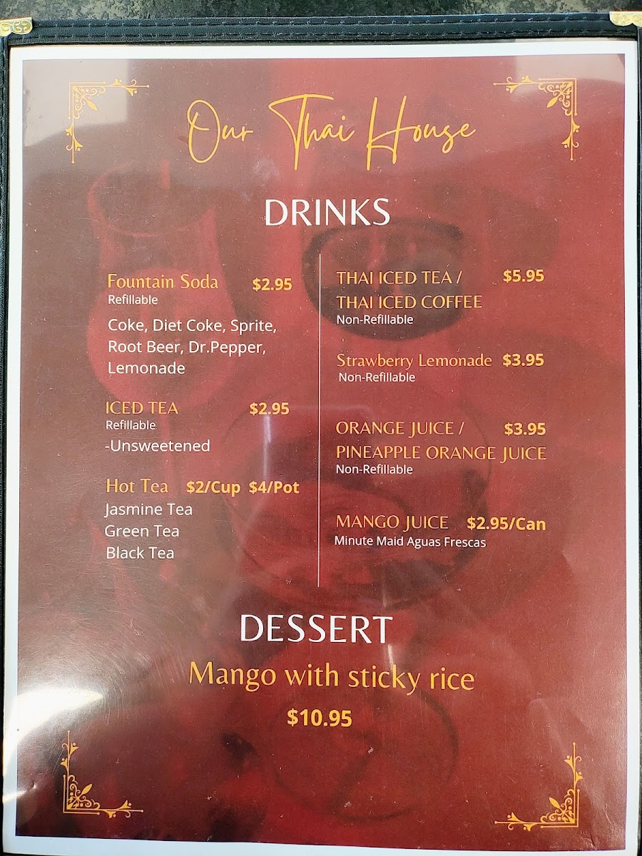 Our Thai House Menu